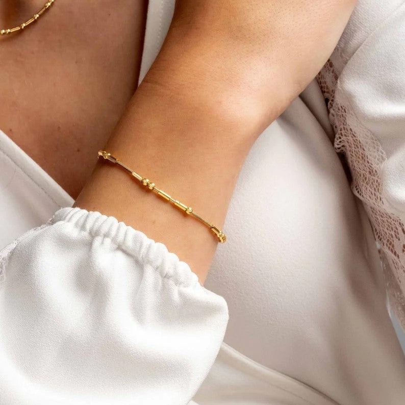 La chaîne est dotée d'un fermoir coulissant conçu pour rester autour de votre poignet lorsqu'elle est ajustée à votre taille préférée.
